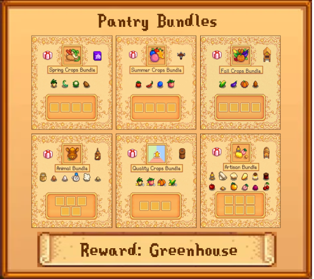It's a good idea to have a chest that contains special items you'll need for gifting to villagers, and for fulfilling their requests. Villager requests are often crops that you may not be currently growing, disrupting your schedule.